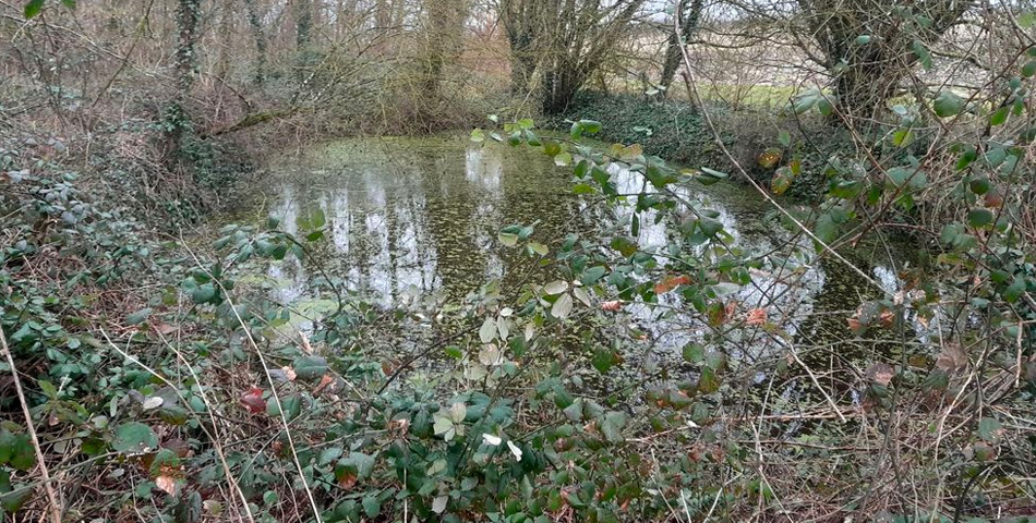 Avant restauration : mare ombragée aux berges abruptes |