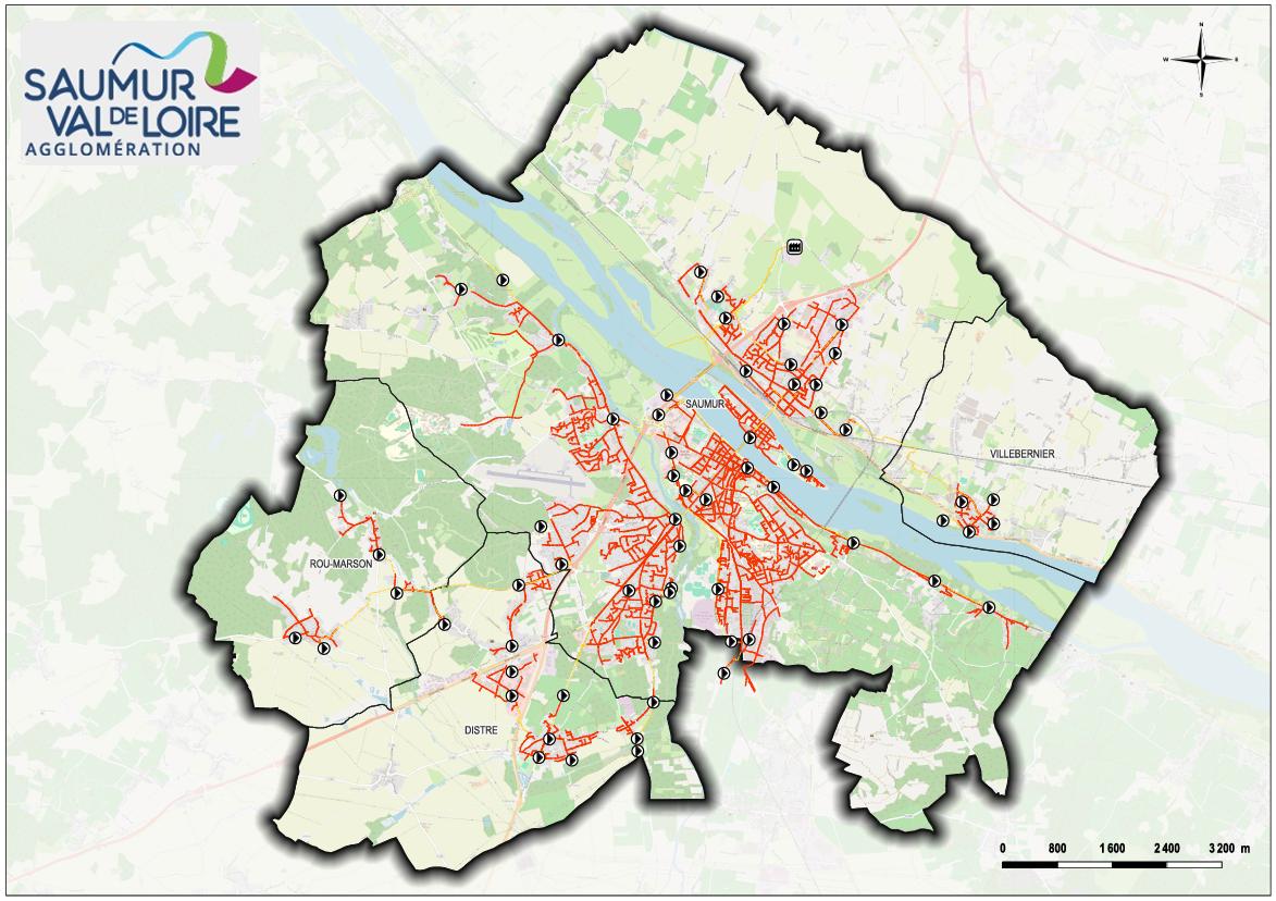 Ce secteur regroupe les communes de Saumur, Villebernier, Distré, Rou-Marson ainsi qu’une partie au nord de Varrains. Il correspond au système d’assainissement convergeant vers la Station d’Épuration de Bellevue à Saumur.