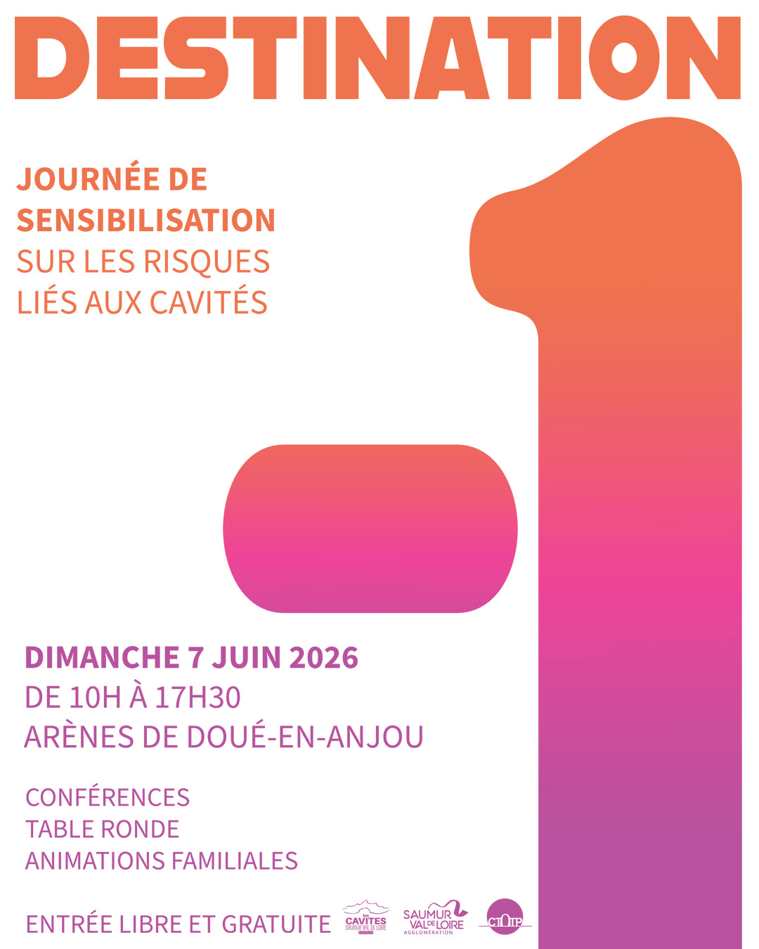 Et si, pour une fois, vous regardiez sous vos pieds… plutôt que devant vous ? Sous la surface, un autre monde existe. Invisible, silencieux… parfois oublié. Un monde qui fascine autant qu’il interroge. Le temps d’une journée, osez l’échappée souterraine. Que se cache-t-il réellement dans ces cavités ? Sont-elles toutes accessibles ? Quels risques… et quelles richesses abritent-elles ? Destination -1, ce n’est pas seulement un événement. C’est une invitation à descendre d’un niveau. À comprendre. À explorer. Destination -1, c'est dimanche 7 juin 2026 de 10h à 17h30 aux Arènes de Doué-en-Anjou Vous avez des questions ? Nous vous accompagnons pour trouver les réponses. Au fil de la journée : conférences, tables ronde, expériences immersives… mais aussi une multitude d’animations pour petits et grands avec projection documentaire, balade dans le noir, contes et légendes souterraines, jeux d’orientation, exposition… Restauration possible sur place. Et si la véritable aventure commençait sous terre ?